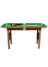 This Charles Bentley junior 4ft wooden Snooker/Pool table is great fun to play with friends and family and would be suitable for the home, youth club or garage. It includes all the necessary accessories for a compact game of snooker and pool so you can start playing straight away. Please Note: Legs not foldable. Table only comes with coloured balls and no American snooker balls (spots and stripes). Includes: Scoreboard Cloth brush Triangle Chalk 2x cues 1x set of balls (7 red, 7 yellow, 1 black, 1 white) Materials: Wooden table Cloth top Dimensions: H62 x L119 x W65cm Ball circumference: 2.8cm Cue length: 32" Weights: 12kg Colours: Green Some self-assembly required. Full instructions provided.
