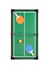 ntroducing the Power Play 4 in 1 Stand Up Games Table. This indoor games table features four classic games: pool, table hockey, table football and table tennis, all in one compact and convenient table. It’s perfect for anyone looking for a versatile and fun games table to entertain children or kidults! Whether you're hosting a party or just looking for some fun indoor activities, this 4 in 1 stand up games table is sure to provide hours of entertainment for you and your loved ones. This 4 in 1 games table includes everything you need to get started with each game. The football table comes with 2 balls, ideal for 2 players to compete against each other. The hockey game includes 2 pucks and 2 pushers, providing a fast and exciting game experience. The pool game comes with 2 cues, 16 balls, a triangle, table brush, and chalk. The table tennis game includes 2 bats, 2 balls, and a net, ensuring that you can enjoy a great game of ping pong with a friend or family member. Recommended for ages 5 and up, making it perfect for families with young children or adults who want to relive their childhood memories. The product size is H75cm x L37cm x W65cm, making it a compact yet sturdy addition to any game room or entertainment space. The packaging size is H39.5cm x L71.8cm x W19cm, and it comes in a colourful gift box. Don't miss out on this fantastic addition to your home!