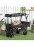 Outsunny Black Outdoor Wagon Stroller Cart with Canopy Top