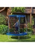 Jump to your heart's content with this SPORTNOW trampoline! Featuring a PE net and padded curved poles, it keeps you safe inside the enclosure as you jump. Three solid steel U-shaped legs and 36 springs ensure strong and steady bounces, providing enjoyable play. The tight-weave PP mat and external safety pad offer extra protection. The zipped entry allows easy access – great for exhilarating outdoor fun! Colour: Blue and black