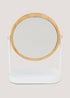 Apply your makeup, dry your hair or have a general primp up with this simple yet stylish mirror. The base is created with white metal for a sturdy and durable construction, while the circular mirror is fashioned with an eco-friendly bamboo frame for a cool contrast. What's more, the mirror can easily be titled so you can find an angle that best suits your needs. Matching items available. Dimensions: 25cm x 19cm x 8cm.