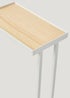 Keep your bathroom neatly organised with this handy side table. In a tall and slender design, the white metal frame is accompanied by a wood-effect tabletop, perfect for storing bathroom essentials and decorative trinkets. Dimensions: 73.5cm x 23cm x 13cm.