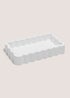 Bring a touch of refined simplicity to your space with this White Scallop Tray. Featuring a graceful scalloped edge and a crisp white finish, it’s the perfect way to neatly display skincare, soaps, candles, or other daily essentials in your bathroom.