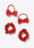 Stock up on sweet essentials with this timeless 4 pack. Styled in a gorgeous red tone, the bobbles feature cute bow design with ribbed detailing for added interest. Crafted with a super soft material, the scrunchies are perfect for school and festive events.