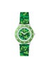 Minecraft Green Printed Strap Quartz Watch with Creeper Dial. Features a 2-hand analogue display, time-teaching feature, and fun green printed soft silicone strap with traditional buckle fastening. Packaged on a branded backing card and comes with one year guarantee. Dimensions 33mm x 8 mm x 230 mm (width, depth, length)