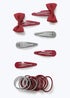 Multipack Girls Burgundy Hair Bobbles & Hair Clips