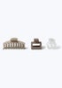 Learn moreOur lovely three-pack of claw back multipacks in neutral tones is the perfect accessory to effortlessly complete your ensemble. Crafted from high-quality materials, these claw grips provide a secure and comfortable hold for all hair types. Add a touch of sophistication to any hairstyle, from sleek updos to half-up half-down looks.