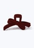 Add a touch of vintage glamour to your hair with the Muse Burgundy Flocked Bow Claw Clip. Designed in a rich burgundy hue with a soft, velvety flocked finish, this elegant bow clip brings texture, depth, and sophistication to any style.