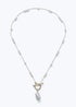 Elevate your style with the Muse Gold Pearl T-Bar Necklace. Featuring a sleek gold chain and a sophisticated T-bar clasp adorned with delicate pearls, this necklace offers a timeless, elegant touch to any outfit. Perfect for both everyday wear and special occasions, it’s a versatile accessory that adds instant charm.