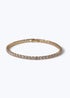 The Muse Gold Tennis Bracelet is a timeless accessory that adds subtle elegance to any look. Featuring a sleek, continuous row of sparkling stones set in gold coloured bracelet, this bracelet offers a sophisticated, refined touch. Perfect for both everyday wear and special occasions.