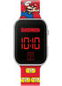 Nintendo Super Mario LED watch with printed red strap, silver plastic casing, red digital light up display, date feature and fun printed strap design with traditional buckle fastening. Packaged in official branded packaging and comes with one year guarantee. Dimensions 35mm x 10 mm x 215 mm (width, depth, length)