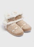 Learn moreCrafted from a sumptuously soft beige coloured knit, our fairisle slipper boot will slot seamlessly into your loungewear wardrobe. This pull-on style features a comfortable and cosy fluffy lining with a knitted fairisle design on the outside ensuring the maximum comfort possible for everyday wear at home. The added white pom pom detailing creates a stylish look for your loungewear upgrade.