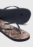 Learn moreKeep your feet comfy and stylish with these flip flops. Crafted with a timeless black tone, they come with a cushioned footbed for added comfort and feature a statement animal print for an on-trend finishing touch.