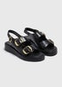 Black Chunky Double Buckle Sandals