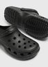 Treat your feet to effortless comfort with these classic black clogs. Crafted for lightweight support and easy wear, they’re ideal for lounging at home, running errands, or casual outings. The breathable design keeps your feet cool, while the cushioned, cleated sole ensures all-day comfort. An optional ankle strap is also featured.