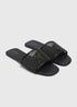Slip into the black diamante mule sliders and elevate your footwear collection. These mules, crafted from luxurious materials, exude sophistication and style. The black shade adds a timeless touch, making them versatile enough to complement any ensemble.