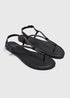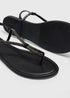 Add a touch of sparkle to your footwear collection with these black sandals. Styled with a classic toe post design, they're finished with a comfy flat sole and are adorned with Diamante detailing for added glam.