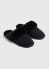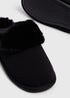 Black Fur Trim Mule Slippers