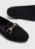 Elevate your style with these Gold Metal Bar Loafers in a premium black suede. Designed for both comfort and sophistication, these loafers feature a sleek black suede exterior that exudes a modern, refined look. The standout gold stirrup detail on the front adds a touch of glamour, effortlessly combining timeless elegance with contemporary flair. Perfect for both workdays and weekends, these versatile loafers pair effortlessly with everything from tailored trousers to casual denim, making them a must-have addition to any wardrobe.