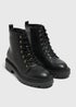 You don't want to miss out on these Black Lace Up Boots. Step out in style with these gorgeous black boots featuring intricately detailed quilted uppers and stylish lace-up fastenings, with gold detail. Crafted from the finest materials, these boots are the height of comfort and sophistication. You'll be able to wear them all day long without any discomfort. Dress to impress with a pair of skinny jeans, a blouse, and these stunning boots or for a more casual look, pair them with your favourite pair of leggings, a tunic, and a long cardigan.