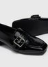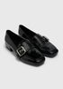 These timeless loafers are crafted from smooth black leather, with a patent finish and feature a chic silver buckle detail at the heel. The loafers are the perfect way to add a touch of sophistication to any look. Slip them on with your favourite trousers and blouse for a polished office ensemble, or dress them down with jeans and a tee for a more casual look.