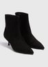 Learn moreOur black point heeled ankle boots are the perfect accessory to any outfit. These chic boots add a touch of class to any outfit, perfectly blending style and practicality. The suede like material creates a sophisticated look along with the point front and small stiletto heel, creating a put together, classic style boot. Pair these boots with tights, skirt and a blouse for a formal office look or pair with jeans and a t-shirt for a put together everyday stylish look.