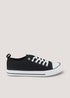 Learn moreComfy trainers are an essential for your weekend wardrobe - and this canvas pair is no exception. Styled in black with a sturdy contrast sole and ribbed toe cap, these trainers are finished with a practical lace up front and fashion-forward eyelet adornments. Easy to pair with all your favourite jeans and shorts.