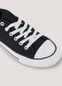 Comfy trainers are an essential for your weekend wardrobe - and this canvas pair is no exception. Styled in black with a sturdy contrast sole and ribbed toe cap, these trainers are finished with a practical lace up front and fashion-forward eyelet adornments. Easy to pair with all your favourite jeans and shorts.