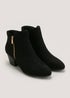 Need a new go-to pair for your workdays? Say no more, and welcome these super chic boots into your footwear collection. Created with comfy black fabric and styled with luxurious gold zips for easy on/off, the chunky heel ensures a sturdy construction, too. Heel Height: 2 1/4 Inch.