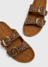Brown Leopard Double Buckle Sandals