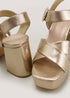 Go all out one glam for your shoe collection with these statement heels from Et Vous. Created with luxurious gold soles and a chic cross strap, they come complete with a block heel platform style for a fierce appearance, together with circular buckle fastenings so you can easily customise your comfort. Heel Height: 3 3/4 Inch.