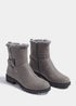 Round off your autumn/winter looks with these chic grey biker boots. Lined with snuggly faux fur, they feature edgy buckle accents and a side zipper for easy on and off. The cleated sole provides traction and comfort, making them perfect for your cold-weather adventures. Whether paired with jeans or a dress, staying stylish is an absolute breeze with this versatile pair.
