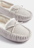 Slip into something comfortable on an evening with this classic pair of moccasin slippers. Styled in grey construction for a versatile touch, they're sure to pair perfectly with so many pyjama sets. Crafted with a soft faux fur lining, they include bow detailing to the front for extra style points and are finished with shimmering metallic detailing.