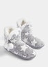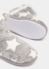 Kick back in style with these practical slippers! Styles in a versatile grey tone, they feature a practical boot design, chic star print and gorgeous pom poms to the sides for added fun. Crafted with a soft faux fur lining, they're finished with a sturdy sole to ensure a comfortable wear.
