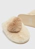 Mink Heart Pom Mule Slippers