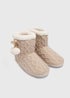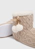 Learn moreCrafted from a sumptuously soft oatmeal coloured knit, our knitted slipper boot will slot seamlessly into your loungewear wardrobe. This pull-on style features a comfortable and cosy fluffy lining with a knitted design on the outside ensuring the maximum comfort possible for everyday wear. The added white pom pom detailing creates a stylish look for your loungewear upgrade.