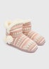 Step into warmth with our Pink Fairisle Boot Slippers, designed to keep your feet snug and stylish all season long. Featuring a charming Fairisle knit pattern in soft shades of pink, these boot-style slippers wrap your feet and ankles in plush comfort.