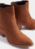 Looking for a staple pair of boots for this autumn/winter? Say no more, and welcome these super chic boots into your footwear collection. Created with comfy tan fabric and styled with luxurious western detailing, the chunky heel ensures a sturdy construction, too. The elasticated sides, meanwhile, ensure easy on/off. Heel Height: approx 2 inch.