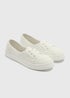Step into effortless comfort with these white Broderie slip-on trainers, designed for easy everyday wear. Crafted with a classic Broderie Anglaise finish, they bring a soft, feminine touch to a timeless casual style. The convenient slip-on fit makes them easy to pop on and off, while the faux lace detailing offers the look of traditional trainers without the need to tie laces. Lightweight and comfortable, they’re ideal for busy days, holidays or relaxed weekends.