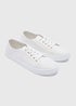 Timeless and versatile, these white canvas trainers are a wardrobe essential. Featuring a classic low-top design with a canvas outer and lace-up fastening, they offer effortless style and everyday comfort thanks to the sturdy sole. The signature plimsoll detailing adds a nod to heritage sporty design, making them perfect for casual, off-duty outfits.