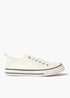 Comfy trainers are an essential for your weekend wardrobe - and this canvas pair is no exception. Styled in white with a sturdy complementary sole and a ribbed toe cap for a great colour contrast, these trainers are finished with a practical lace up front and fashion-forward eyelet adornments. Easy to pair with all your favourite jeans and shorts.